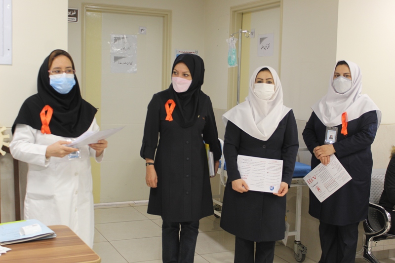 در راستای گرامیداشت روز جهانی ایدز برنامه آموزشی به مراجعین مرکز در مورد این بیماری،راههای پیشگیری،انتقال و.... توسط واحد آموزش سلامت بیمار و خانواده در درمانگاه مرکز....